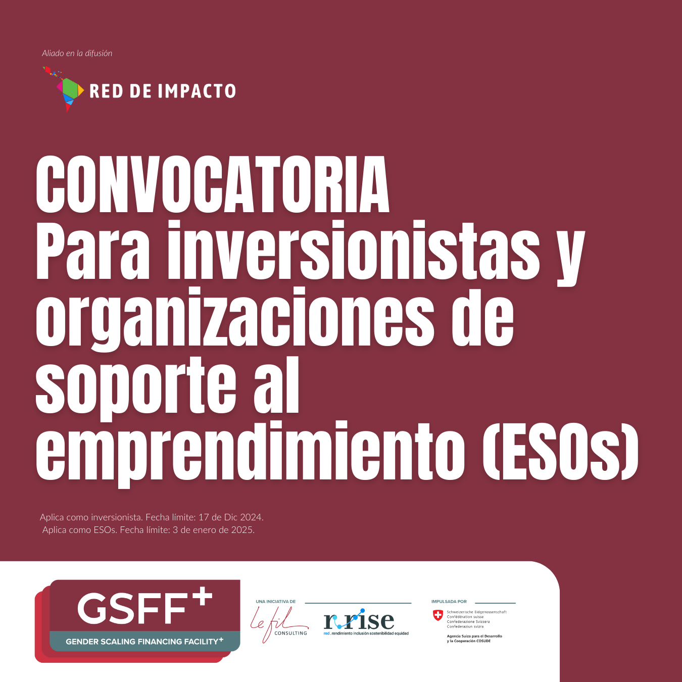 ¿Eres un/a inversionista o líder de una organización de apoyo al emprendimiento (ESO) interesado/a en integrar la perspectiva de género? ¡Esta es tu oportunidad!